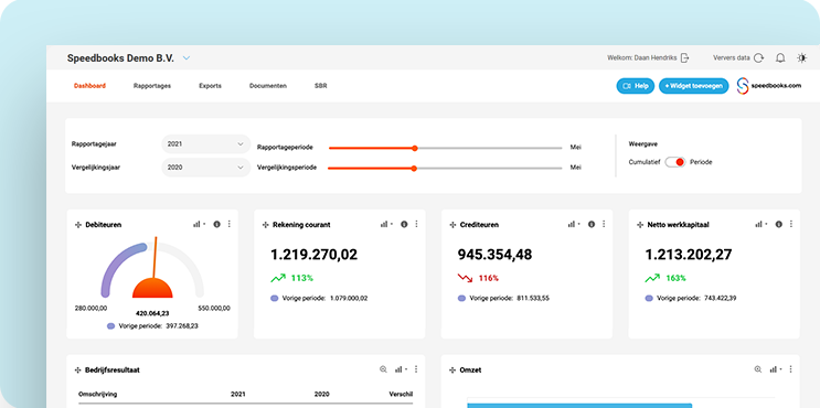 Werk slimmer, niet harder met Speedbooks®. Ontdek de revolutionaire manier van financieel rapporteren. Met onze gratis demoversie ervaar je zelf hoe je kunt: