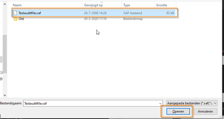 Hier selecteer je de gewenste Auditfile en klik op “Openen”.