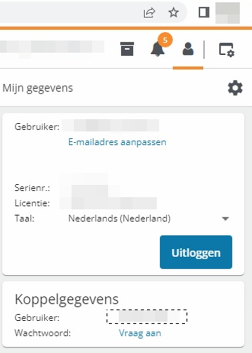Door op “Vraag aan” te klikken bij “Wachtwoord” kunnen ze het wachtwoord van de portalgebruiker aanvragen.