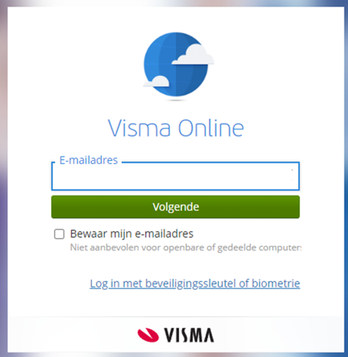 Hier kun je inloggen met jouw Visma eAccountinggegevens.
