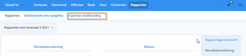 Vervolgens klikt u op exporteer boekhouding.