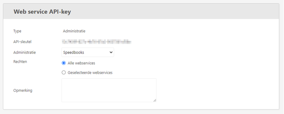 Het aanmaken van een “Access key” moet bij ieder administratie uitgevoerd worden om een verbinding te kunnen maken met die administratie.